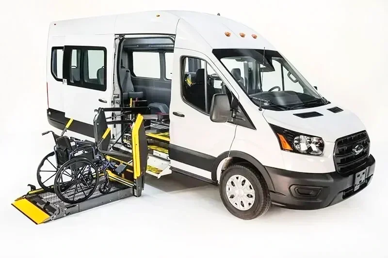 Rides in vehicles equipped with specialized accessibility and safety features for wheelchair users.